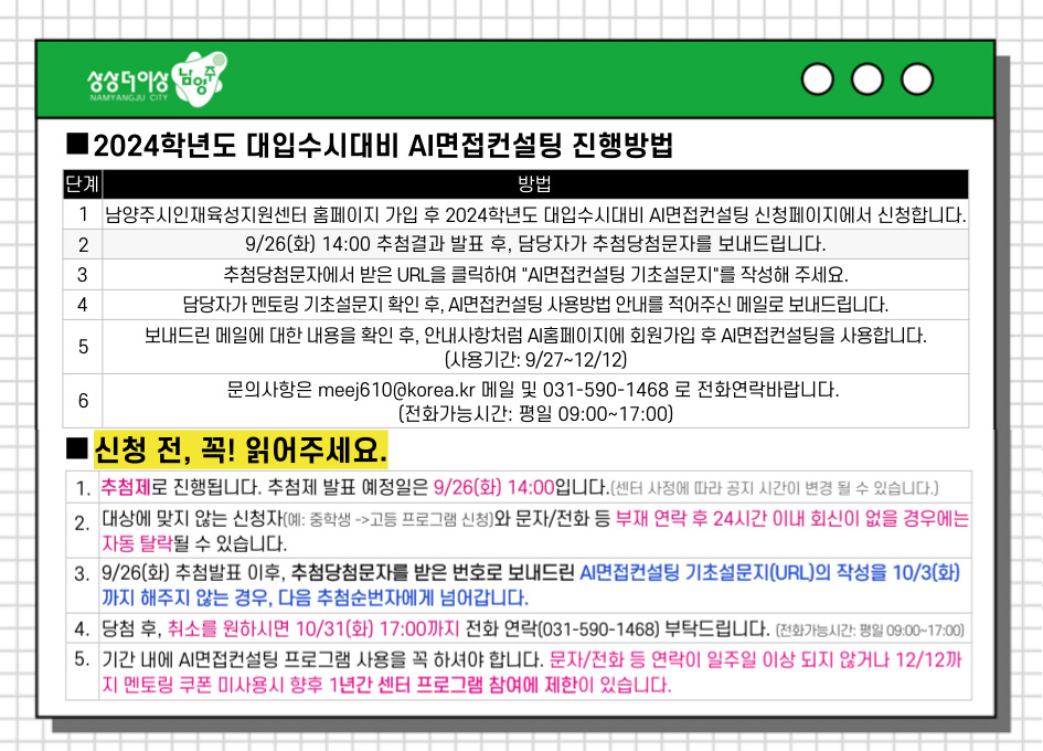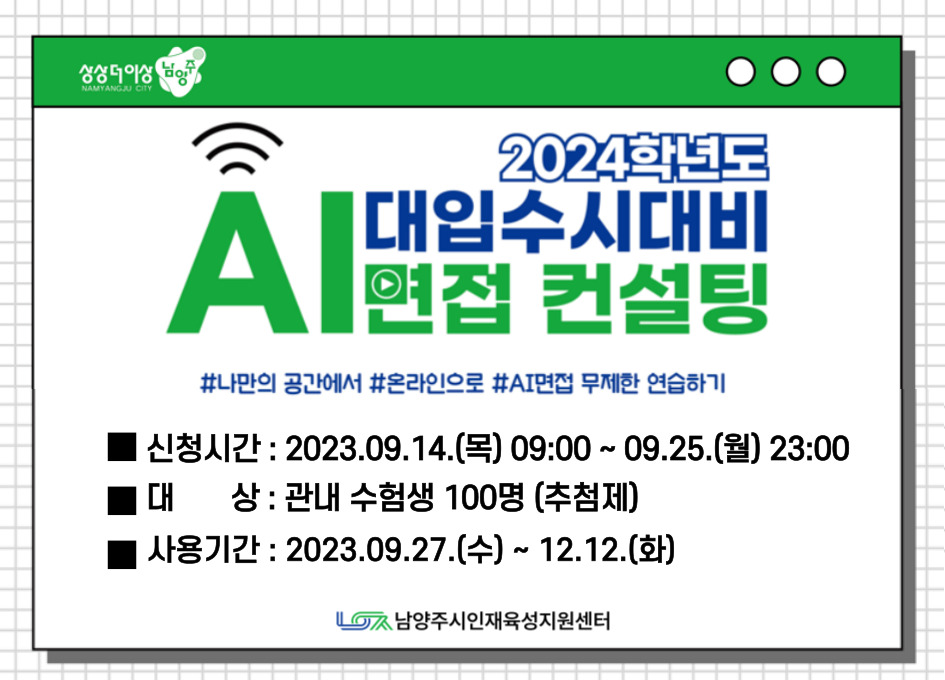 | 프로그램명 | (고등)2024학년도 대입수시대비 AI면접 컨설팅 |