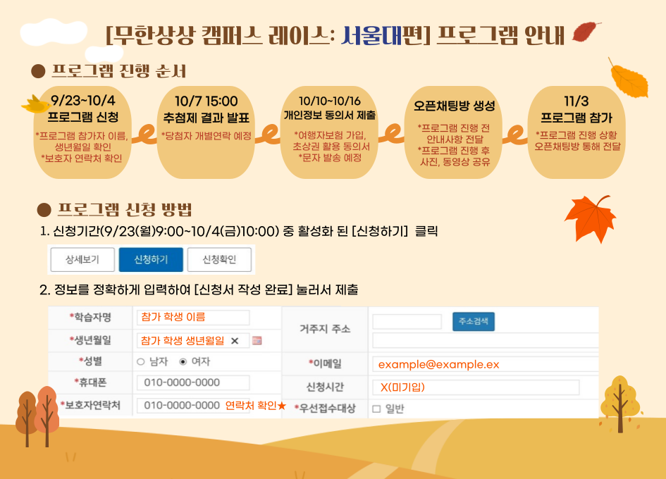 [11/3(일) 고등] 무한상상 캠퍼스 레이스: 서울대편