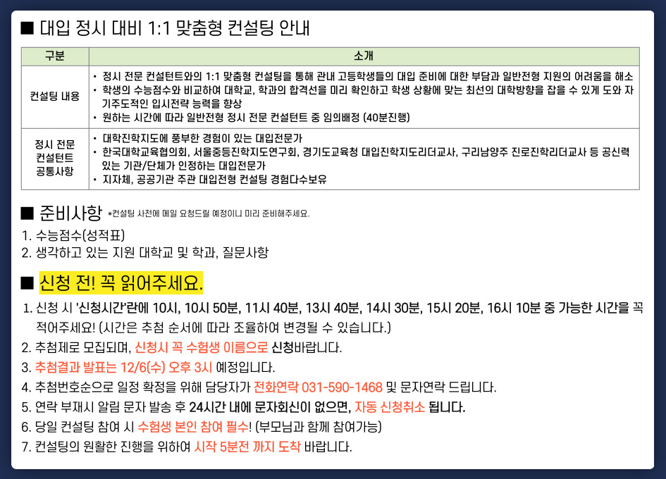 [일반전형] 2024대입 정시 대비 1:1 맞춤형 컨설팅