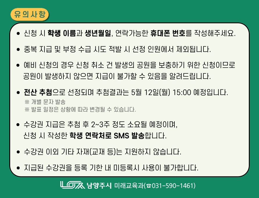 | 문의 연락처 | 남양주시청 미래교육과: 031-590-1461 |
