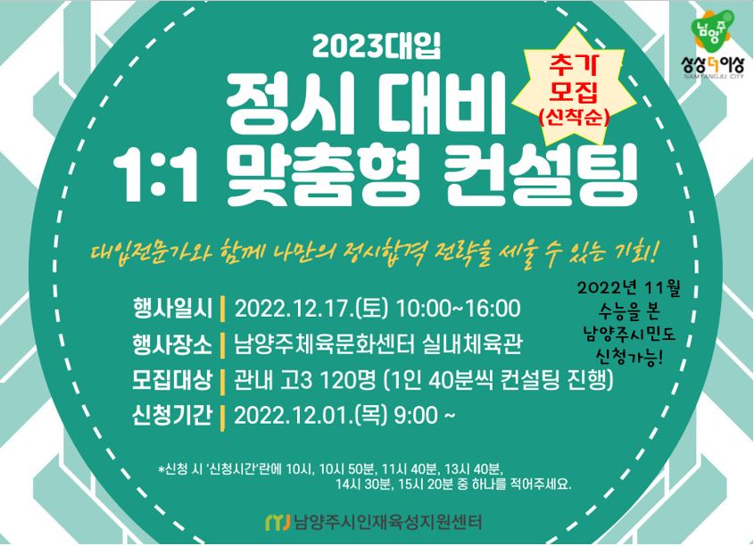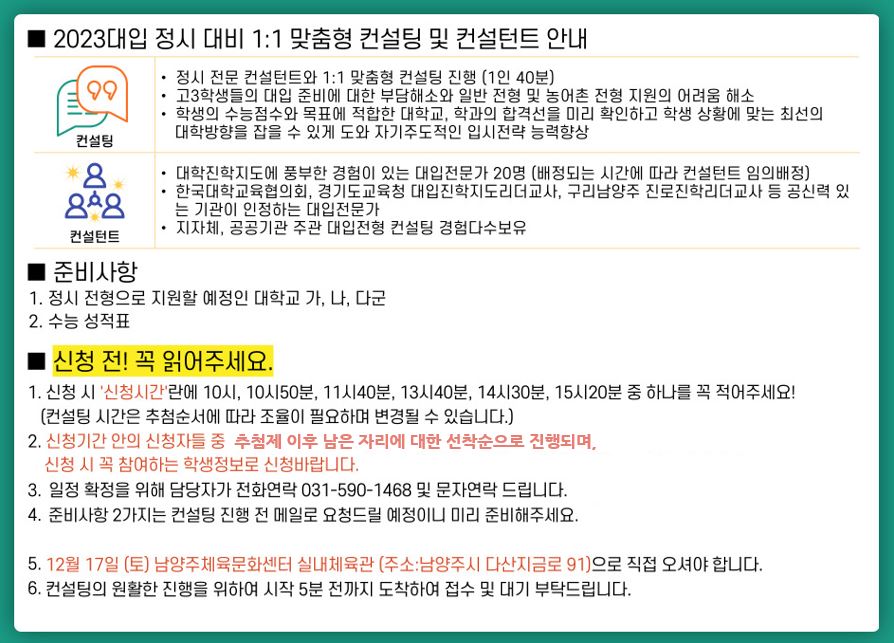 2023대입 정시 대비 1:1 맞춤형 컨설팅 (추가모집)