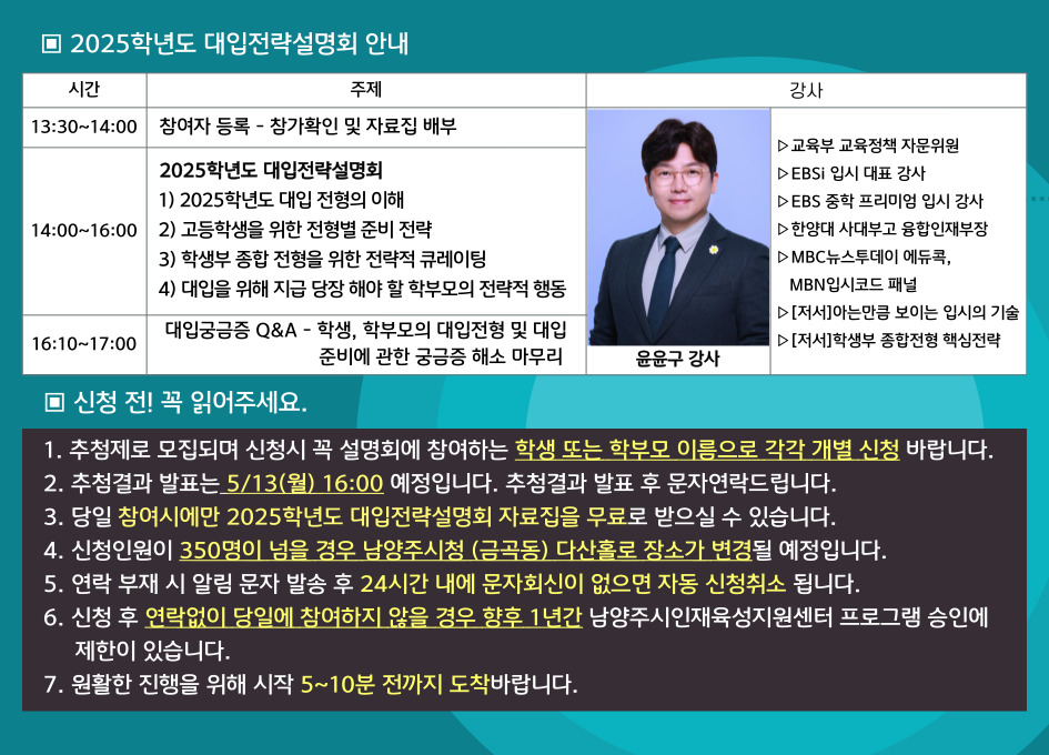| 프로그램명 | 남양주시 2025학년도 대입전략설명회 |