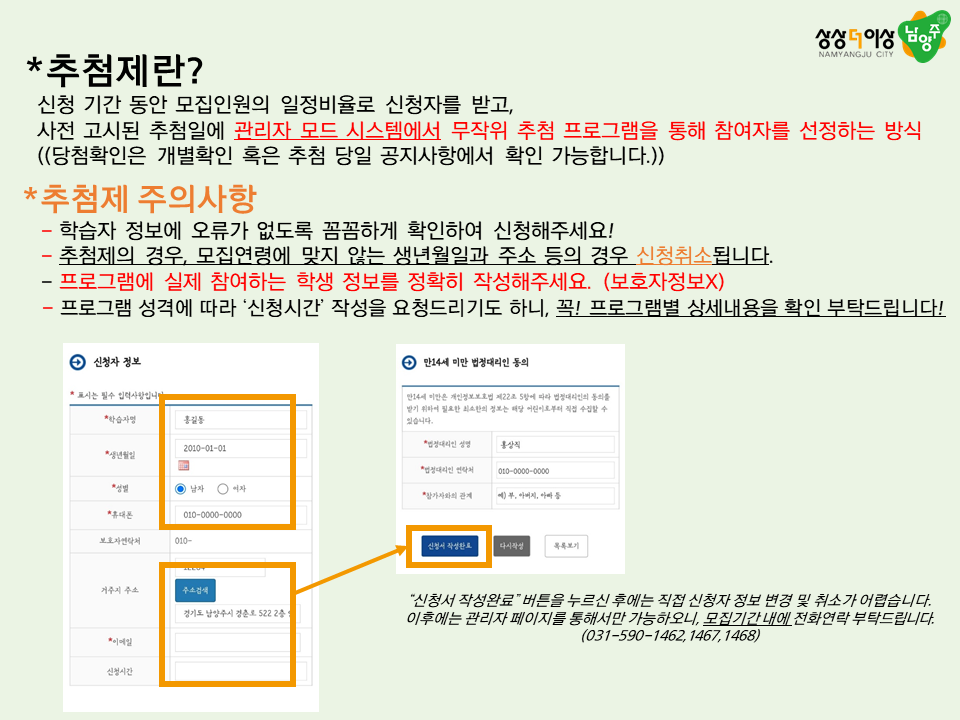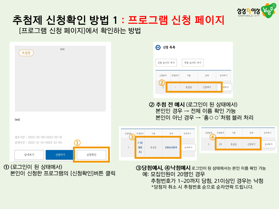 프로그램을 신청하실 때 선발방식이 '추첨제' 일 경우, 아래의 내용을 확인하시고 신청하여 주시길 바랍니다.