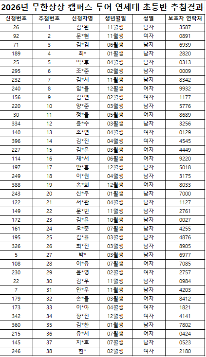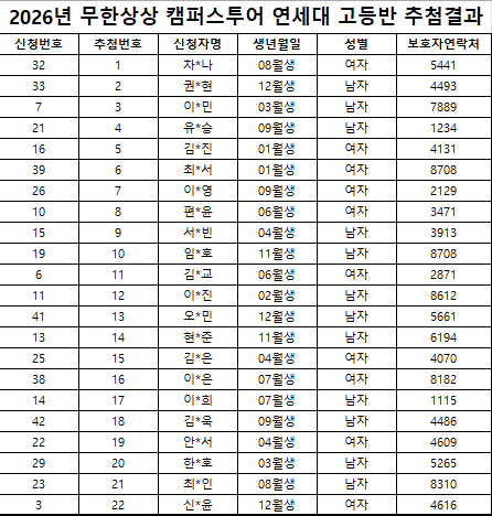 ★04.18. 연세대고등부 신청 인원 미달로 인해 해당일 초등부에서 추가 추첨하였으니 참고하여 주시기 바랍니다★