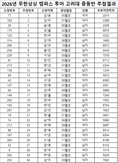 ▶[고려대 중등편] 무한상상 캠퍼스투어 신청확인 페이지 바로가기◀