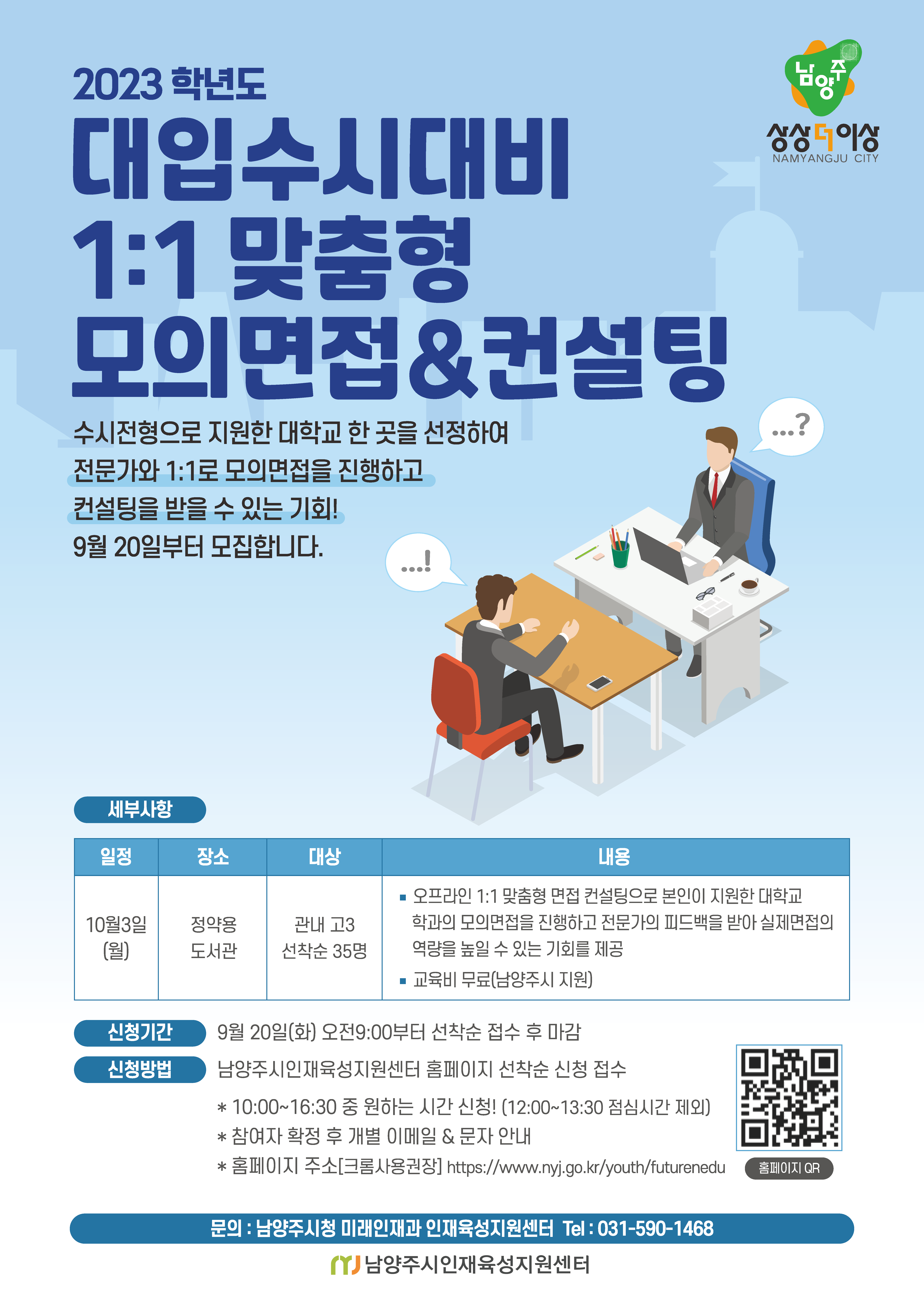 인재육성지원센터 [인재육성지원센터] (오프라인)대입수시 1:1면접컨설팅 참여자 모집