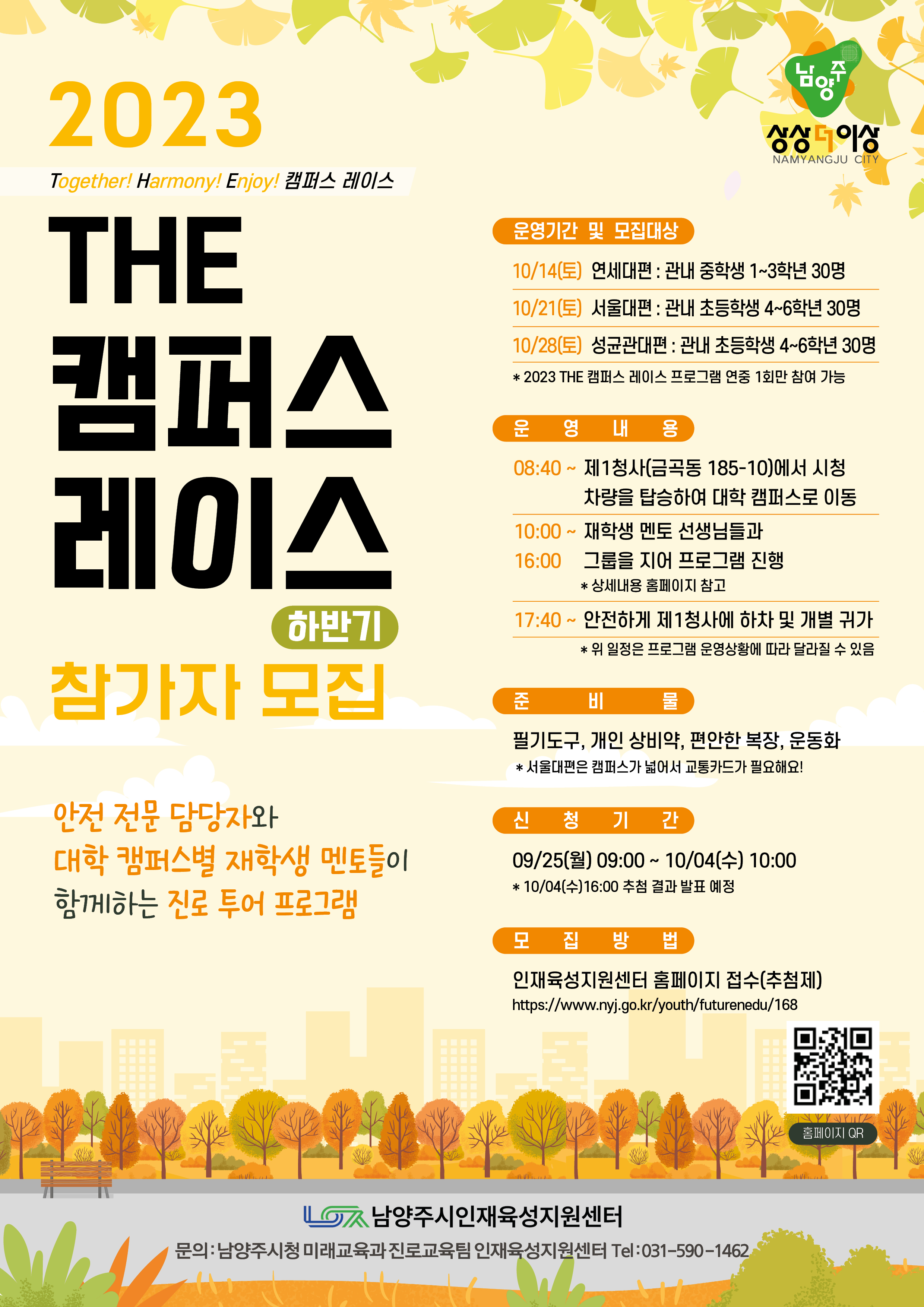 인재육성지원센터 [인재육성지원센터] 초중등 학생을 위한 THE캠퍼스레이스(하반기) 참가자 모집