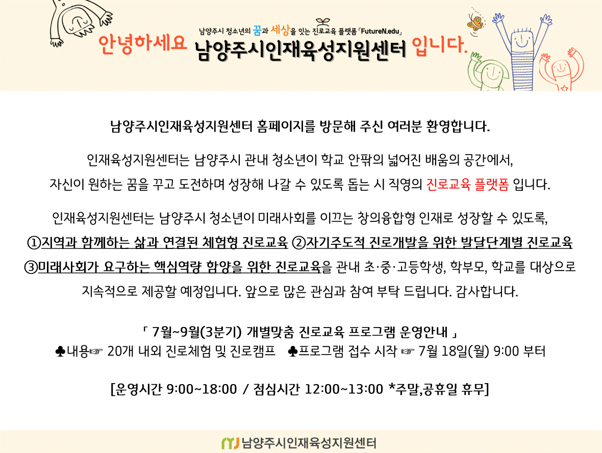 인재육성지원센터 [인재육성지원센터] 홈페이지 오픈 알림 작성자 관리자 등록일자 2022년 7월 11일 9시 33분 35초 조회 533 화면 캡처 2022-07-11 093114.gif [ Size : 111.4KB, Down : 550 ] 미리보기 다운로드 목록보기