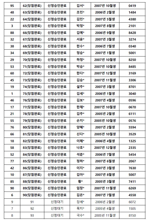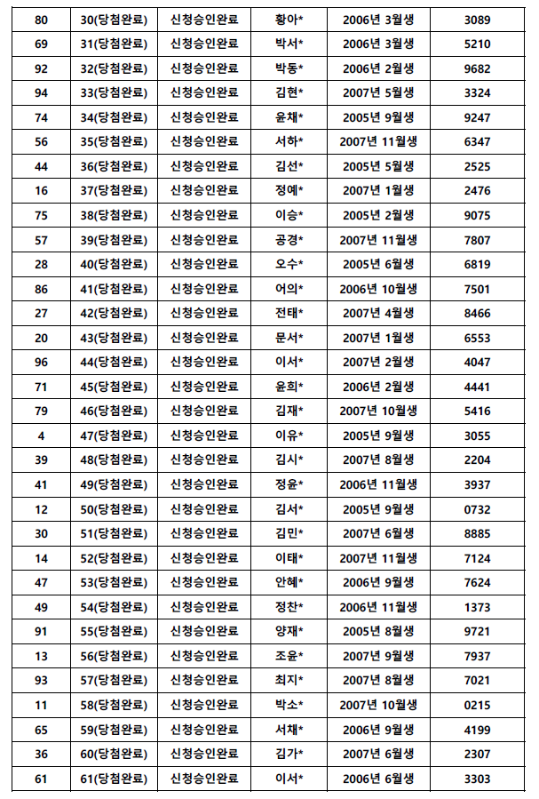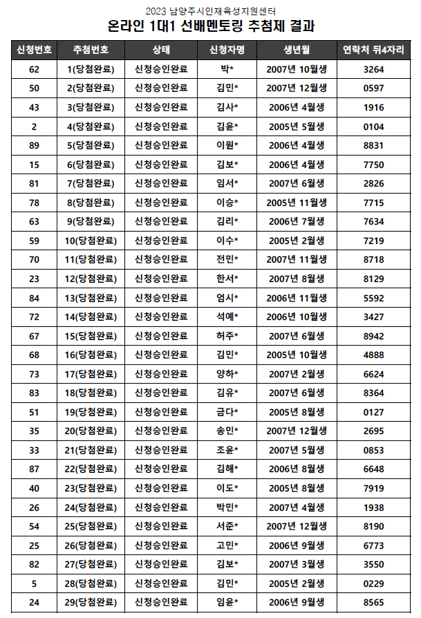 추첨제 결과를 아래와 같이 공지하오니, 확인 부탁드립니다.