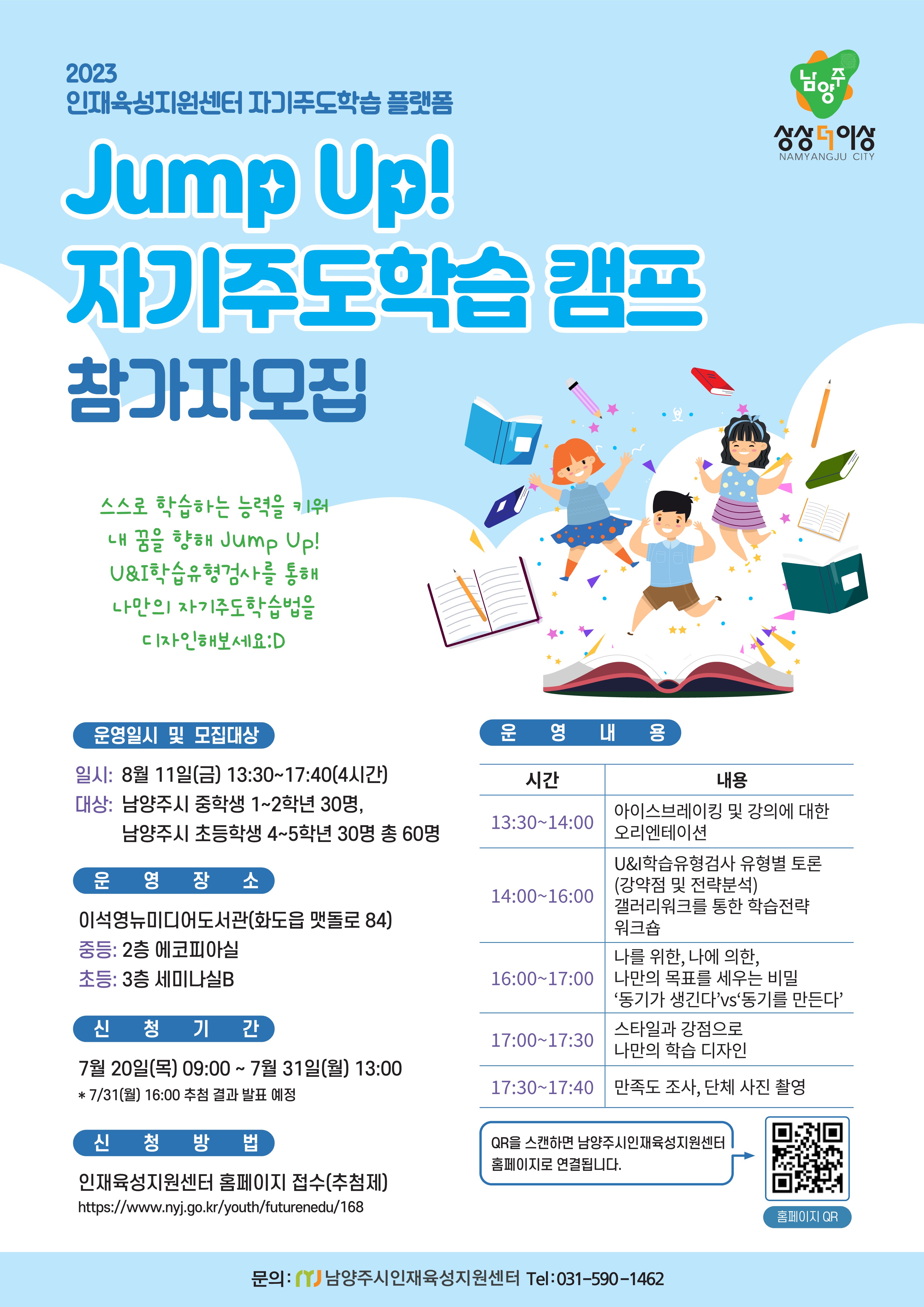 인재육성지원센터 [인재육성지원센터] JUMP UP! 자기주도학습 캠프 참가자 모집 안내