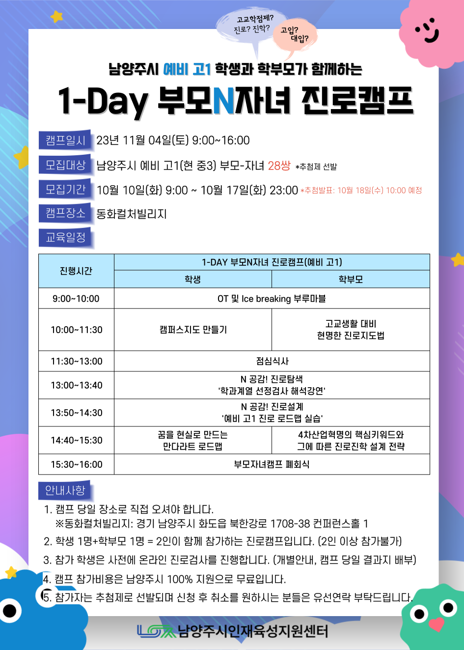 (예비고1 현 중3) 1Day 부모N자녀 진로캠프 바로가기 < 클릭