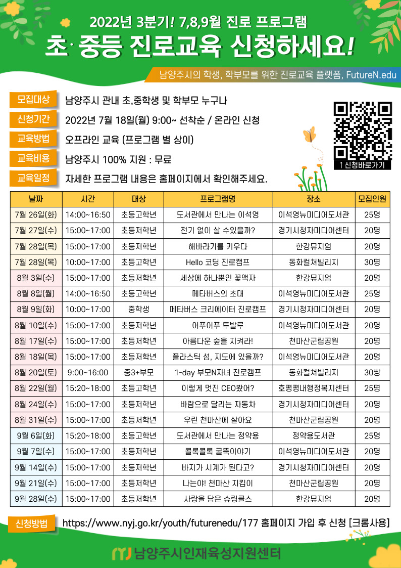 2022년 7월 18일(월) 9시부터 홈페이지에서 회원가입 후 신청 가능합니다. 많은 관심과 참여 바랍니다.