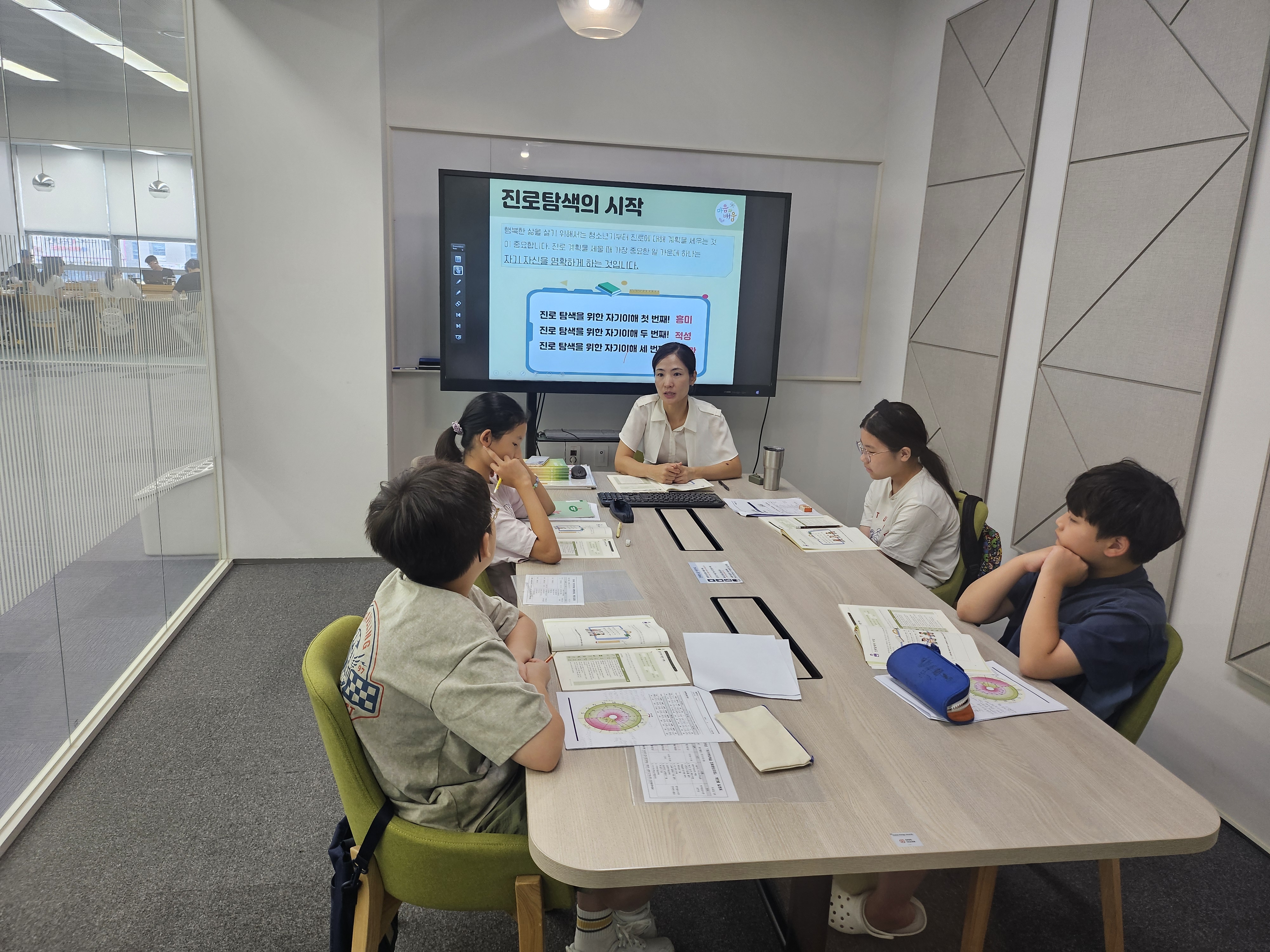♥남양주시 청소년의 행복한 변화와 성장을 돕는 남양주시인재육성지원센터입니다♥ 지난 7월 14일 OT를 시작으로 7월 21일부터 8월 7일까지 정약용도서관에서 초·중학생을 대상으로 [1:4 자기주도학습 진로향상코칭]프로그램을 진행하였습니다. 전문가와 함께 1:4 로 자기주도학습 코칭을 4회기 동안 진행하며, 학생들의 자기주도학습 역량을 키우고 스스로 진로를 탐색하는 방법을 코칭해주는 시간을 가졌습니다. 아래의 교육현장 모습을 감상해보세요^^ |