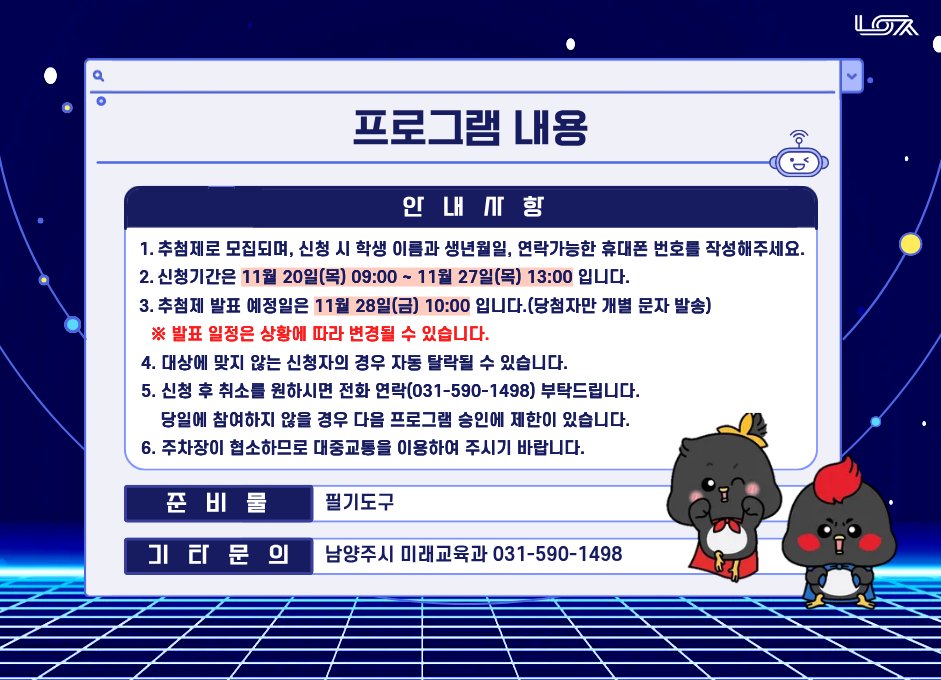 문의 연락처 031-590-1498(미래교육과 진로교육팀)