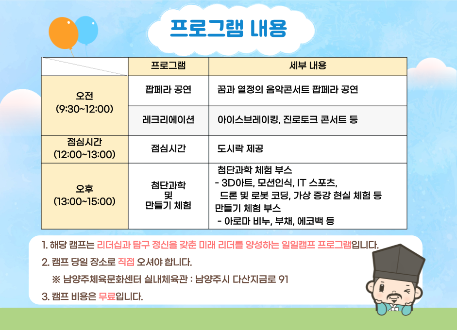 | 프로그램명 | 2025년 제2회 미래를 여는 정약용 인재육성캠프 |