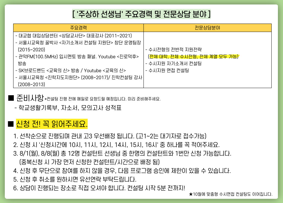 (고등진로) 대입 수시전형 1:1 맞춤형 종합컨설팅
