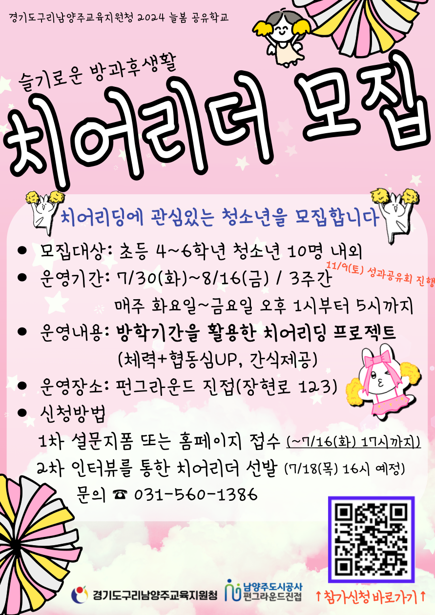 - 운영내용: 방학기간을 활용한 치어리딩 프로젝트(체력+협동심 UP!!, 간식제공 등)