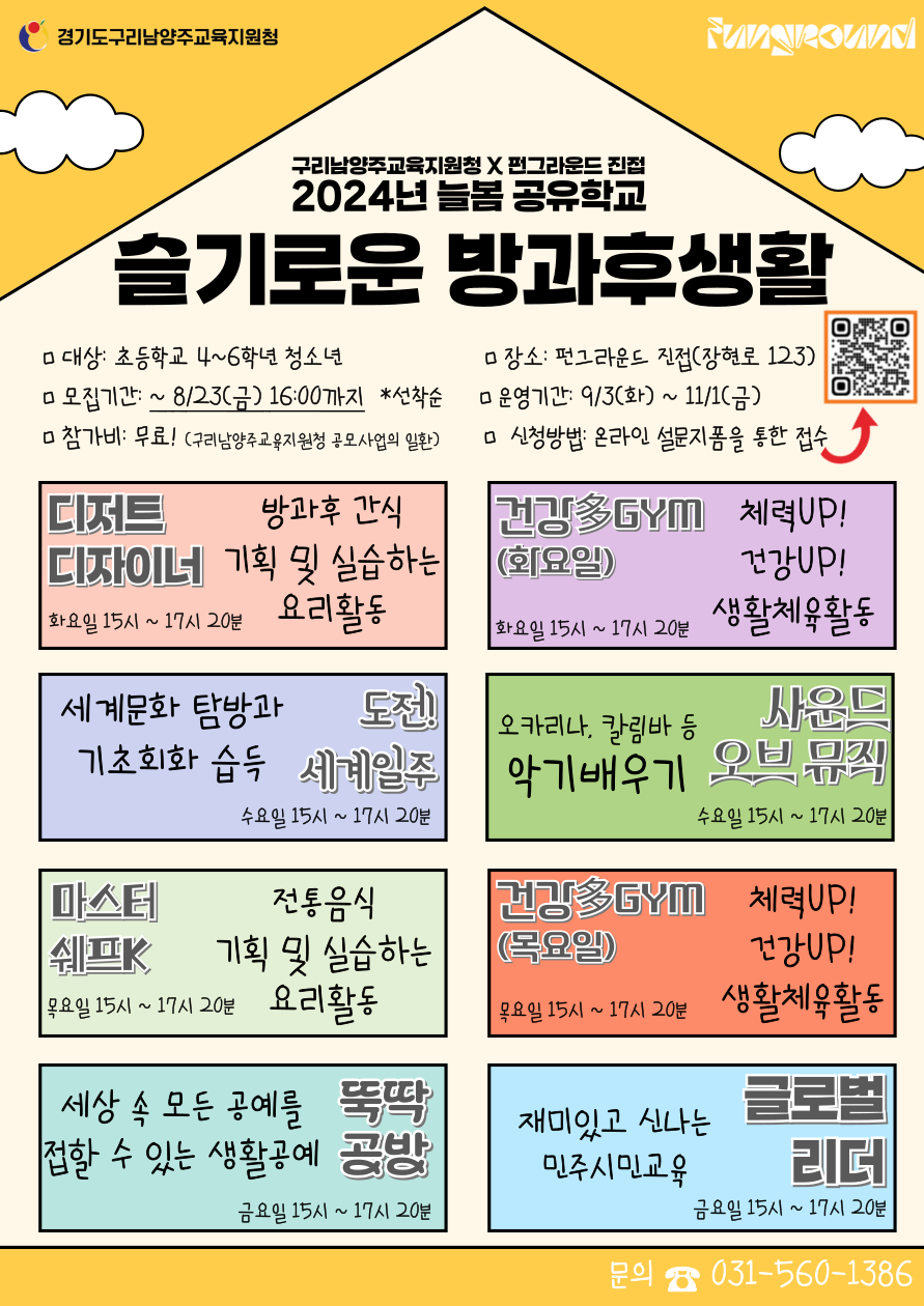 펀그라운드 진접에서 초등 4~6학년 대상으로 <슬기로운 방과후생활>이 시작됩니다. *2024 늘봄 공유학교