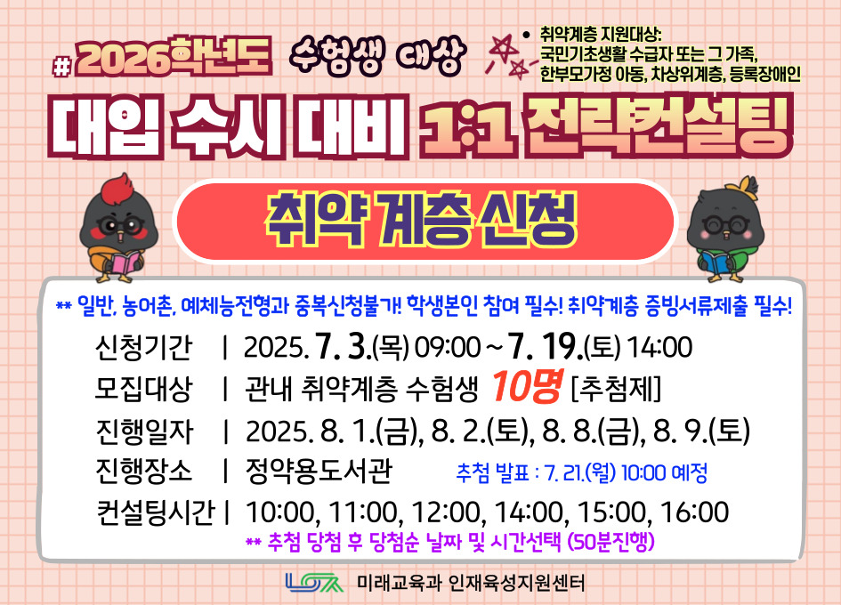 [취약계층신청] 2026학년도 대입 수시 대비 1:1 전략컨설팅