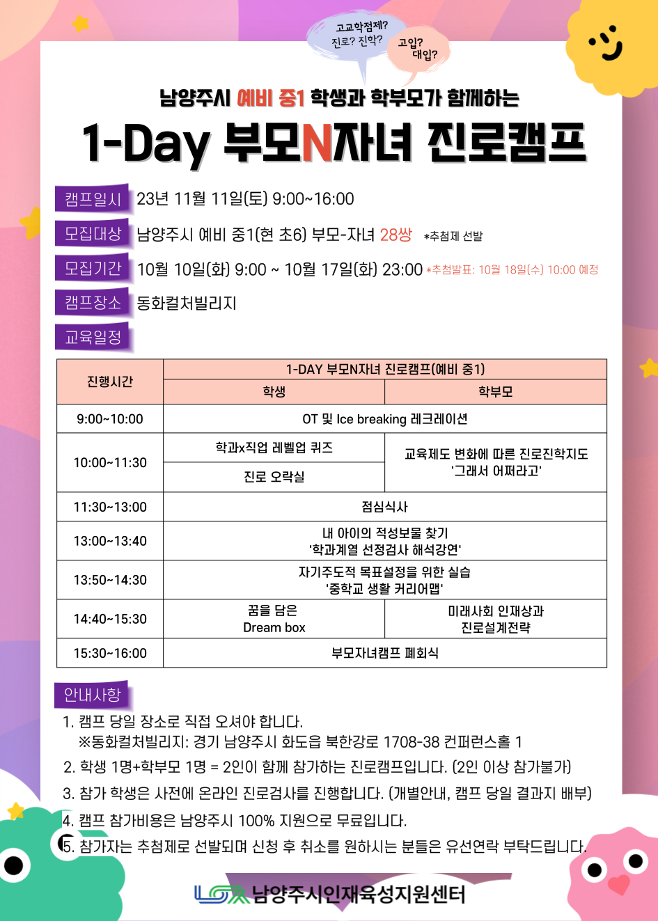 [초등진로] 1-day 부모N자녀 진로캠프(예비중1)