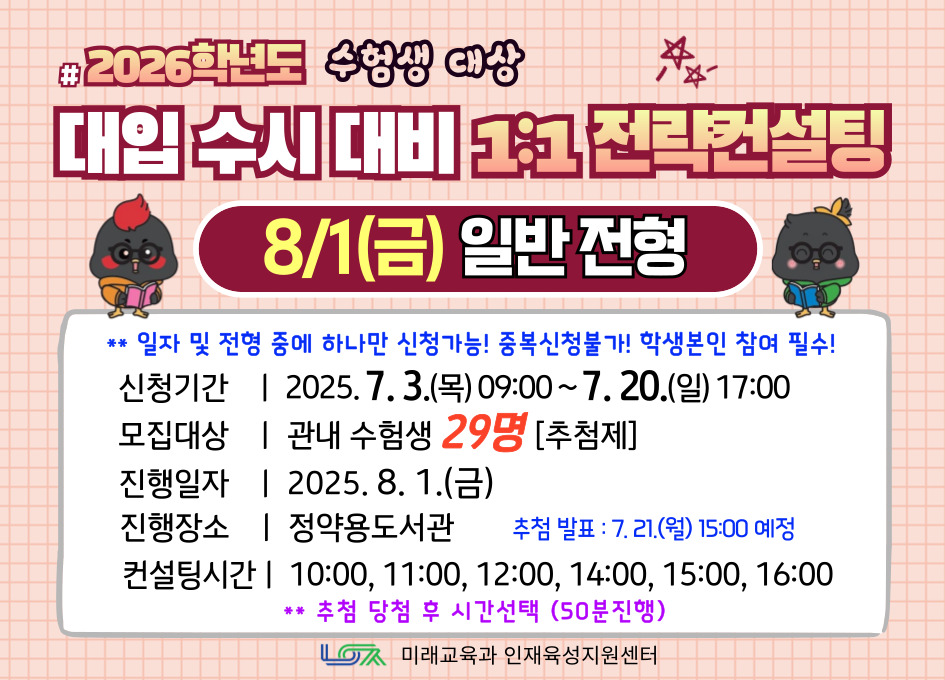 [8/1(금) 일반전형] 2026학년도 대입 수시 대비 1:1 전략컨설팅