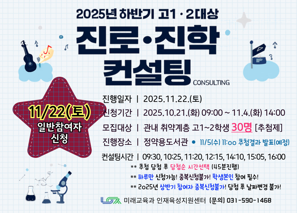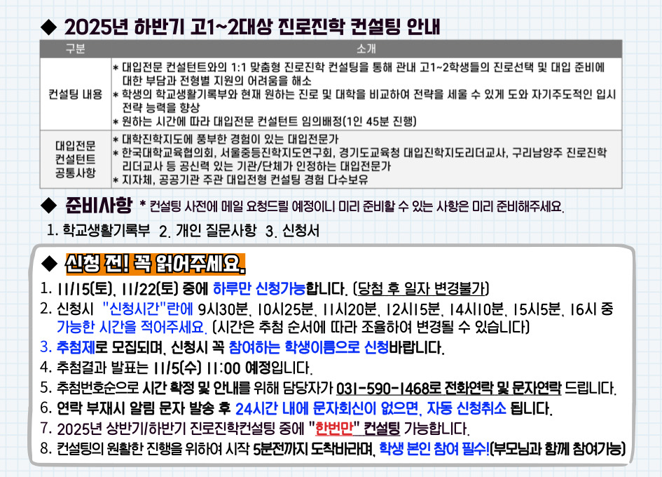 [11/22(토)] 2025년 하반기 고1~2대상 진로진학 컨설팅