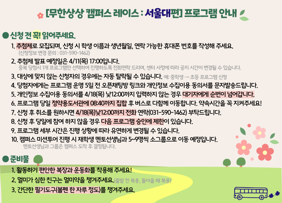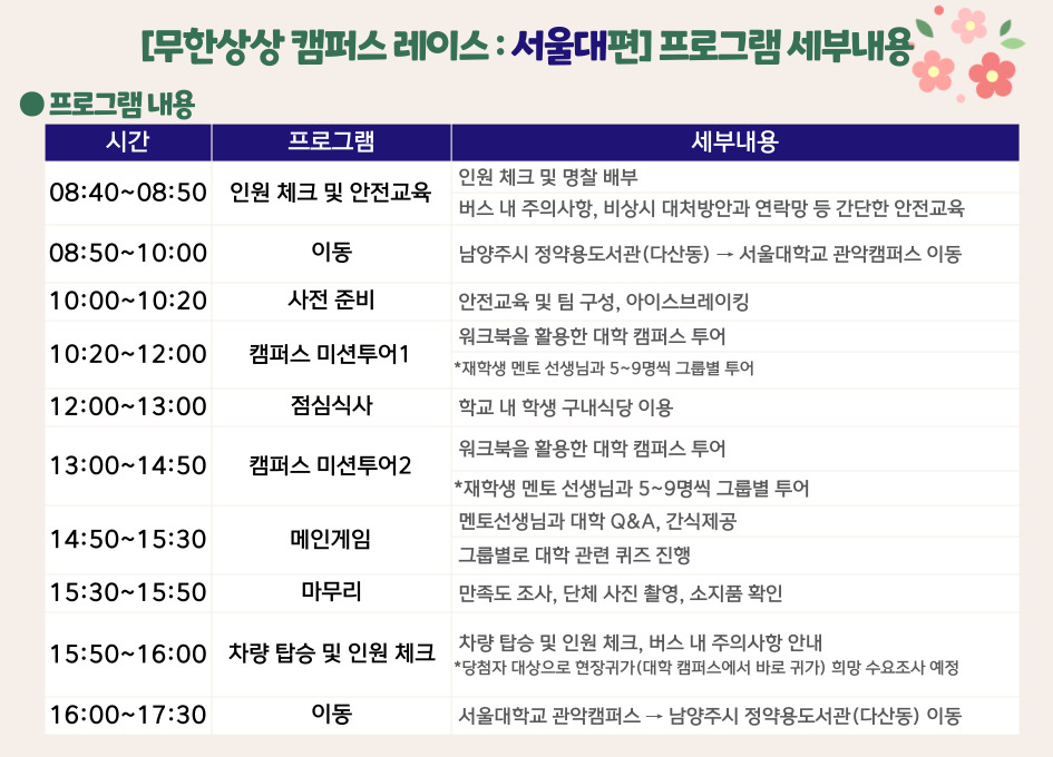 프로그램명 (중등진로) 무한상상 캠퍼스 레이스 : 서울대편