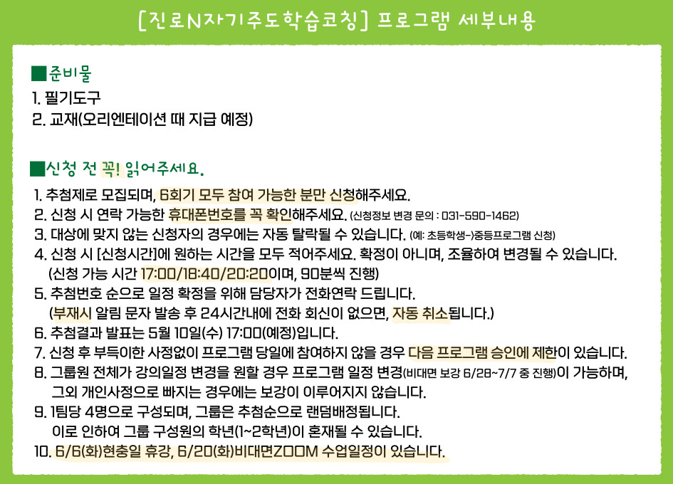 | 프로그램명 | (중등진로) 진로N자기주도학습코칭_별내동 |