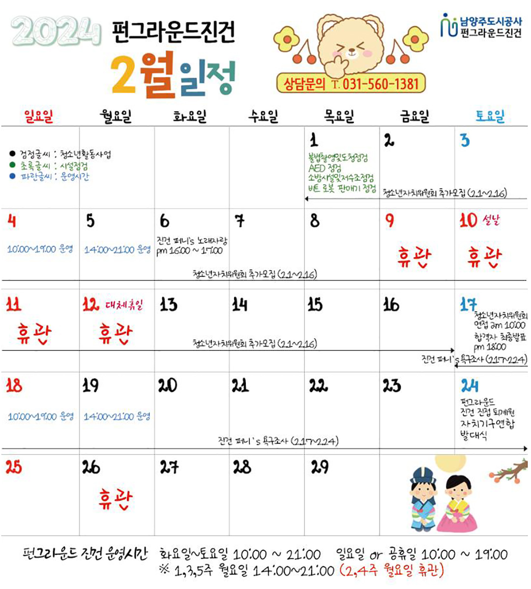 진건 [펀그라운드 진건] 2월 일정 작성자 펀그라운드진건 등록일자 2024년 2월 2일 9시 34분 17초 조회 267 2024-02.JPG [ Size : 404.2KB, Down : 151 ] 미리보기 다운로드 목록보기