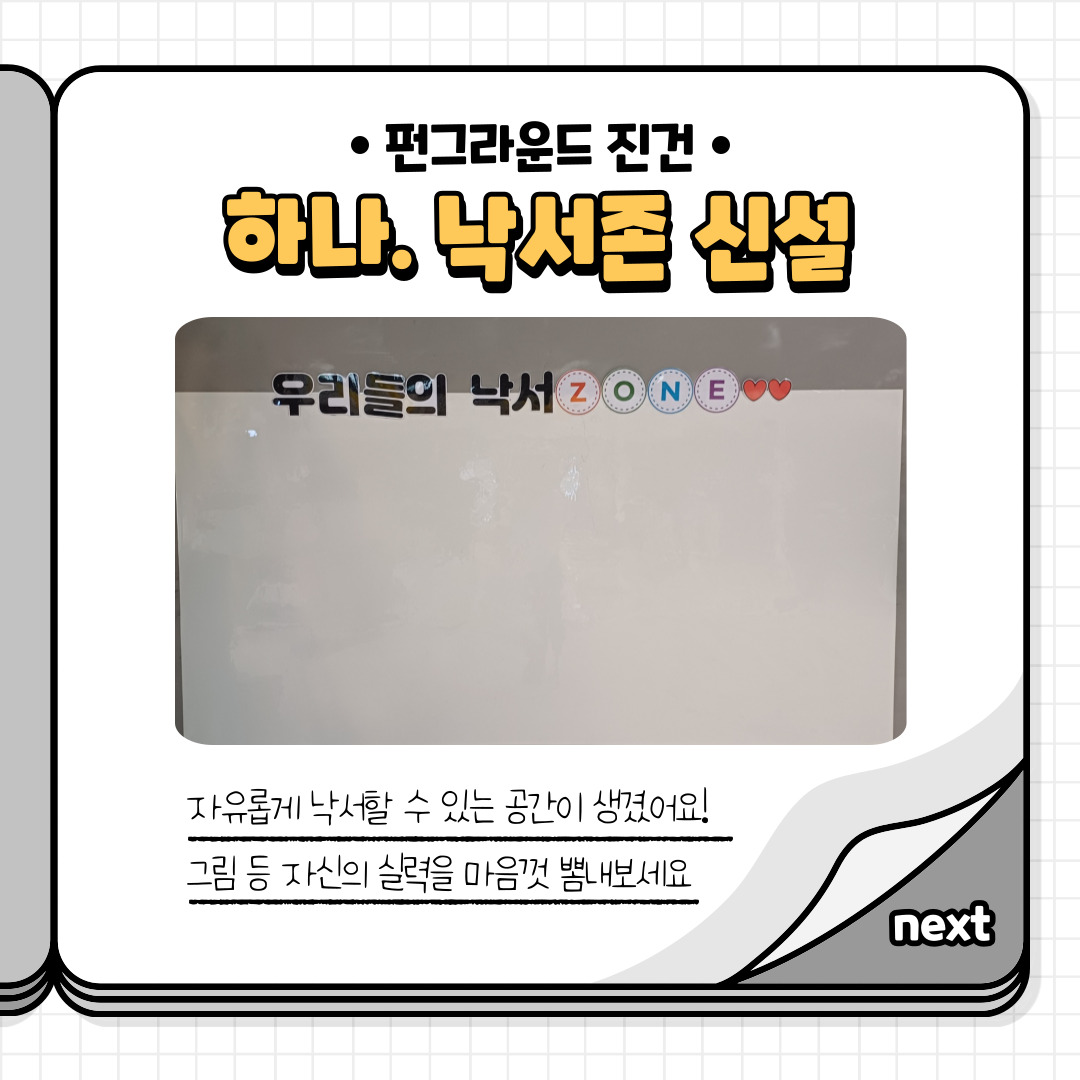 진건 [펀그라운드 진건] 새로운 소식이 찾아왔어요! 작성자 펀그라운드진건 등록일자 2023년 6월 14일 18시 59분 46초 조회 394 펀그라운드 진건에 새로운 소식이 있어요!하나. 낙서존 신설둘. 스포츠테이블 구비셋. 로봇자판기 신메뉴 출시넷. 생일용품 대여서비스 시작많은 관심 부탁드려요~ 001.jpg [ Size : 173.58KB, Down : 129 ] 미리보기 다운로드 002.jpg [ Size : 161.96KB, Down : 137 ] 미리보기 다운로드 003.jpg [ Size : 215.31KB, Down : 137 ] 미리보기 다운로드 004.jpg [ Size : 147.79KB, Down : 156 ] 미리보기 다운로드 005.jpg [ Size : 269.91KB, Down : 142 ] 미리보기 다운로드 목록보기