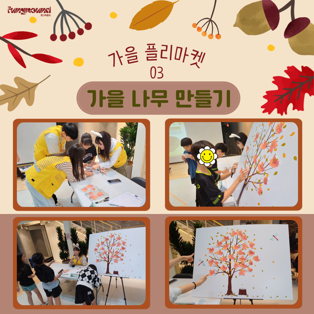 단풍잎 메모지에 펀그라운드 진건에 바라는 점이나 원하는 점을 적어서 가을 나무도 만들어보고