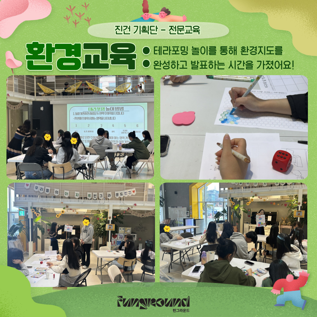 또! 기획단 전문교육으로는 환경교육이 진행되었습니다. 여러가지 재미있는 활동들을 하고 발표하면서 뜻깊은 시간을 가졌습니다!
