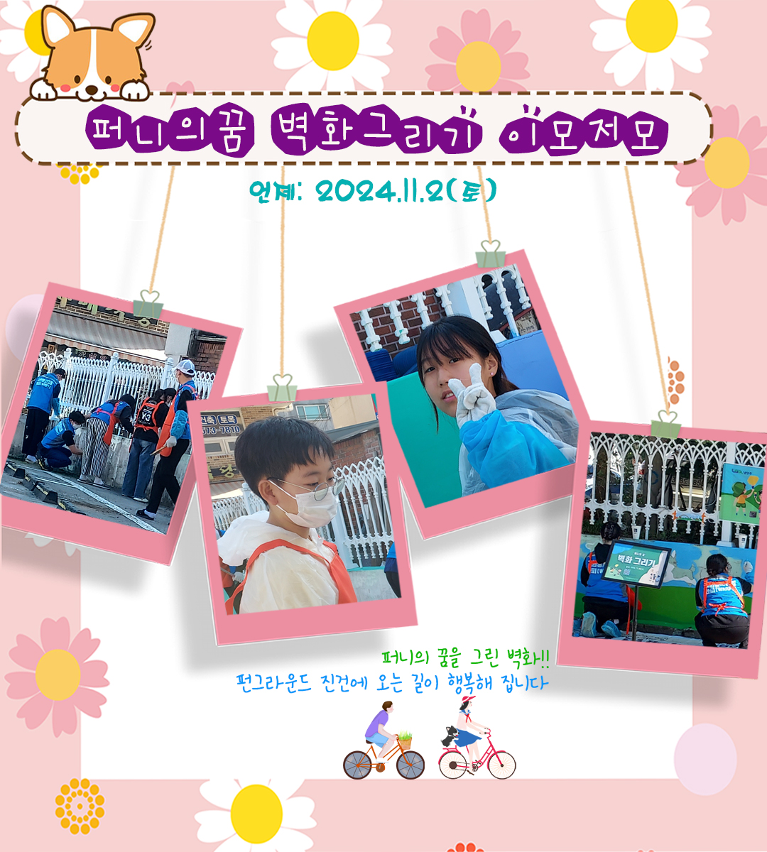 진건 펀마을 만들기 '퍼니의 꿈' 벽화 그리기를 했어요~~ 작성자 펀그라운드진건 등록일자 2024년 11월 8일 9시 25분 27초 조회 187 벽화그리기_활동-1.jpg [ Size : 823.31KB, Down : 75 ] 미리보기 다운로드 벽화그리기_활동-2.jpg [ Size : 1.11MB, Down : 74 ] 미리보기 다운로드 벽화그리기_활동-3.jpg [ Size : 1.17MB, Down : 64 ] 미리보기 다운로드 목록보기