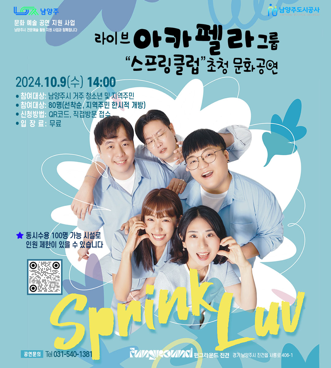 아카펠라 그룹 스프링클럽을 초청하여 청소년과 지역 주민들에게 건전한 노래로 문화체험을 할 수 있는 기회를 제공 함. |
