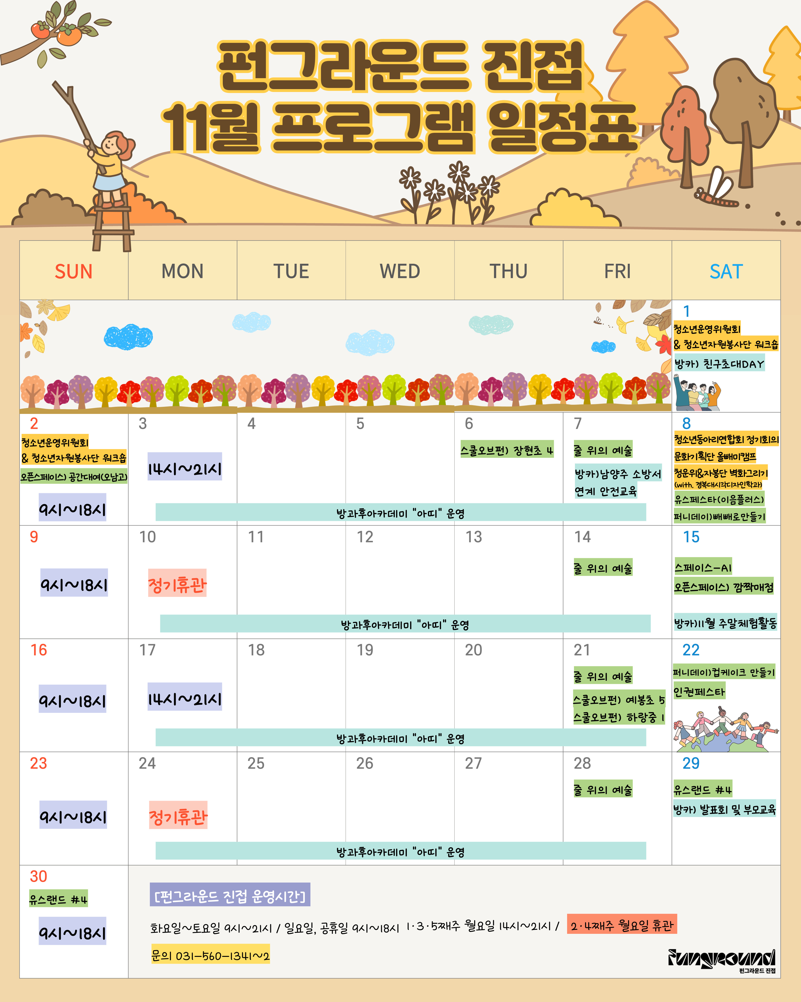 공지 진접 [공지] 펀그라운드 진접 11월 일정