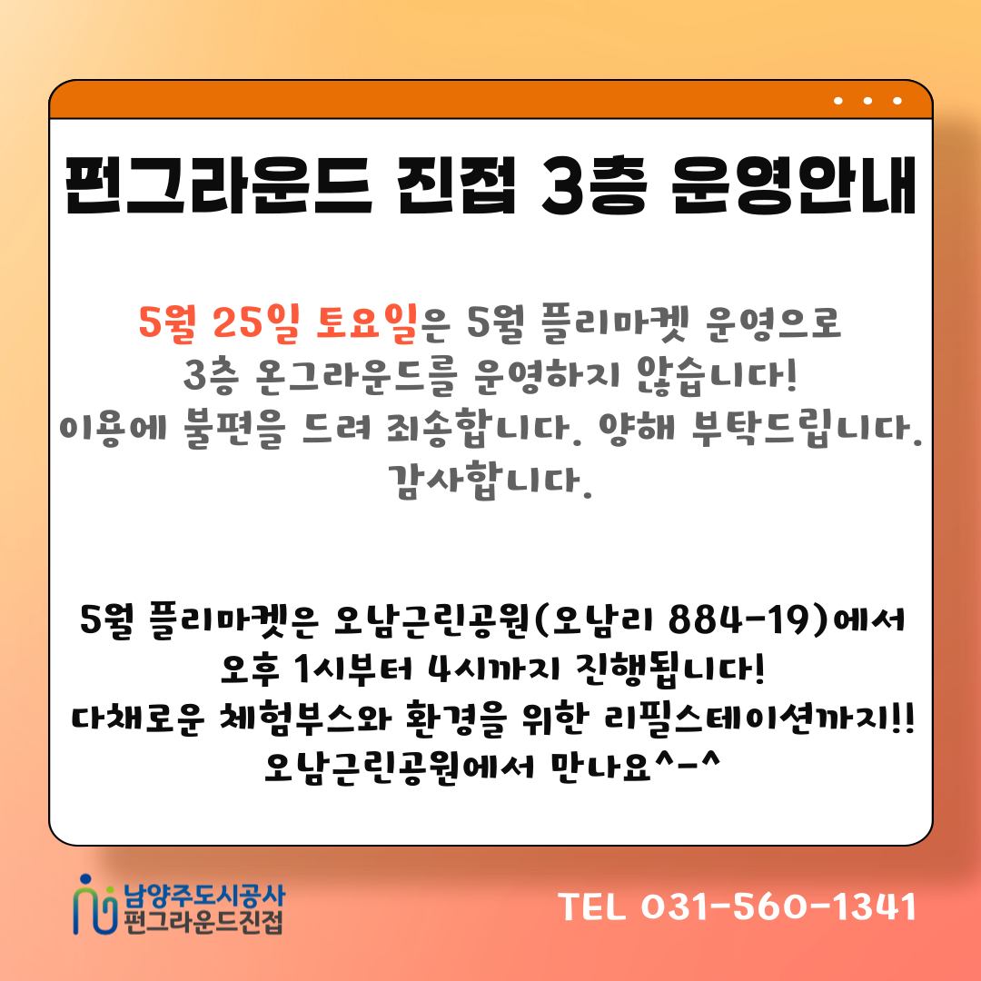 5월 25일 토요일, 오남근린공원(오남리 884-19)에서 플리마켓이 진행됩니다!!