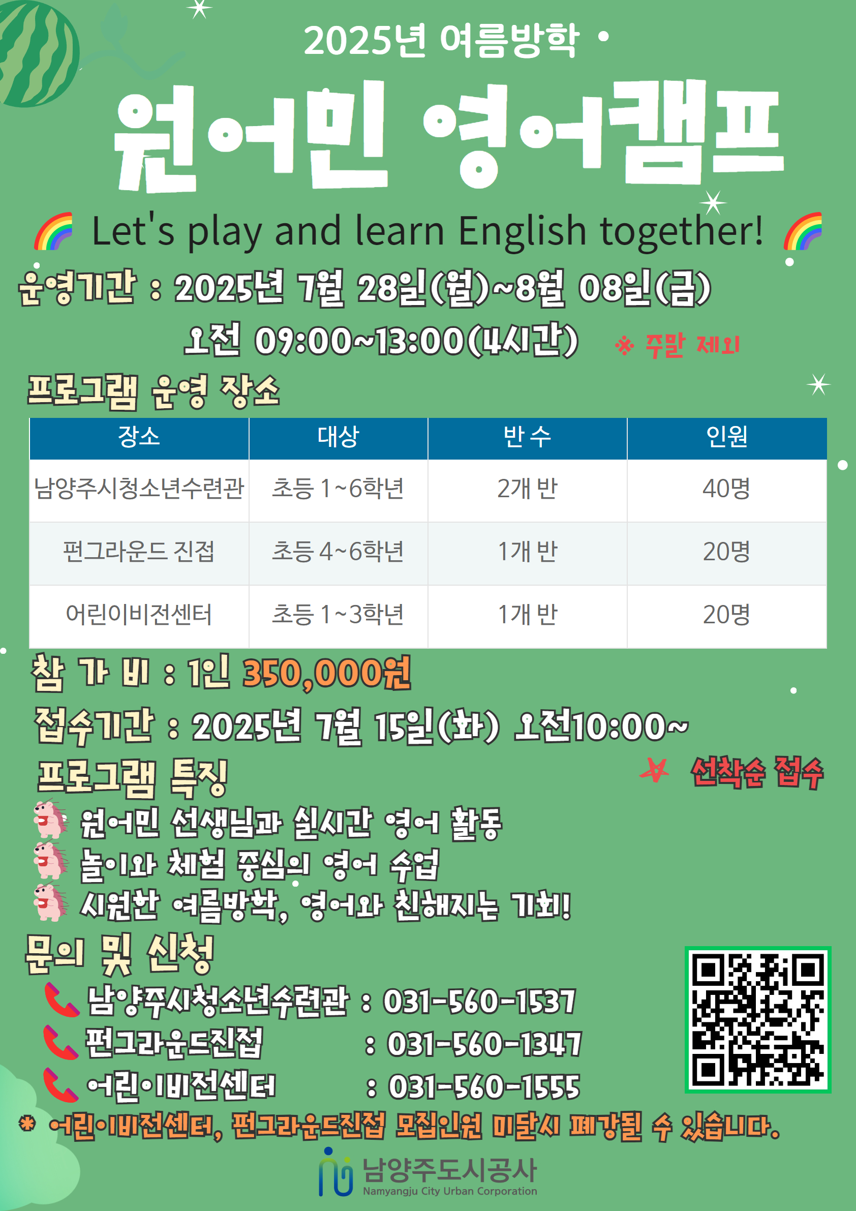 진접 [공지] 2025년 여름방학 원어민영어캠프 참가자 모집 안내