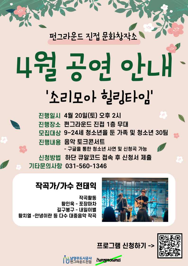 진접 [모집] 4월 문화창작소 "소리모아 힐링타임(버스킹)"