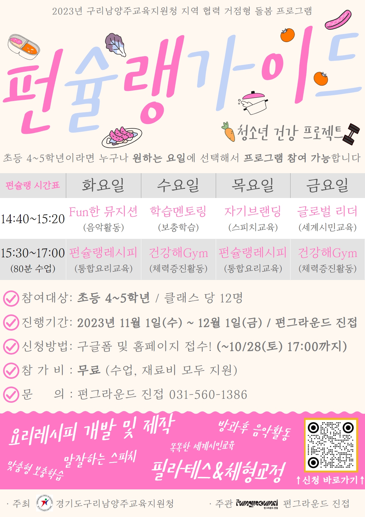 2023년 구리남양주교육지원청 지역 협력 거점형 돌봄프로그램 "펀슐랭 가이드" 참가자 모집