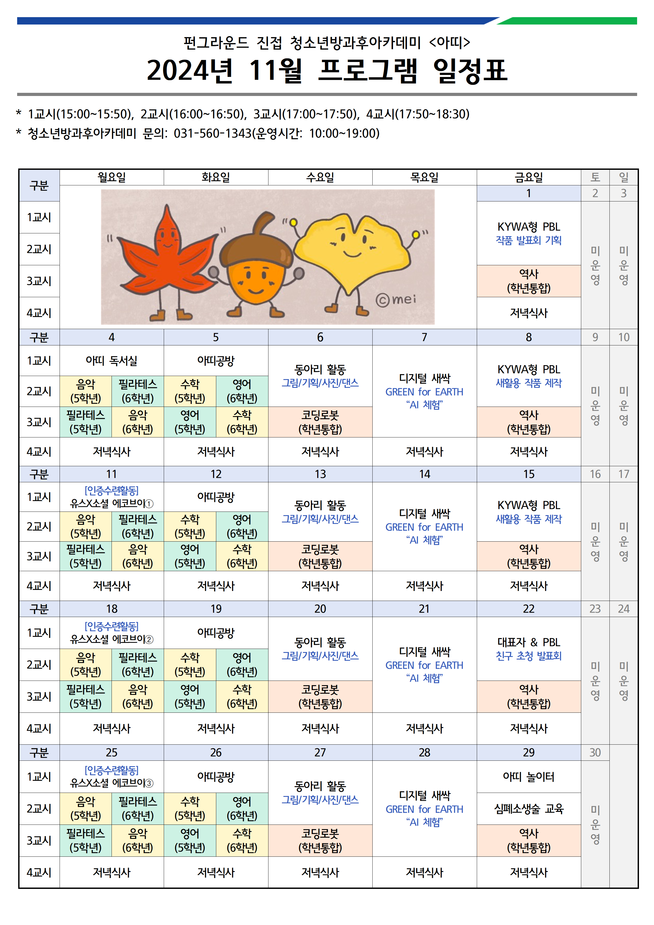 진접 [공지] 펀그라운드 진접 청소년방과후아카데미 "아띠" 11월 프로그램 일정
