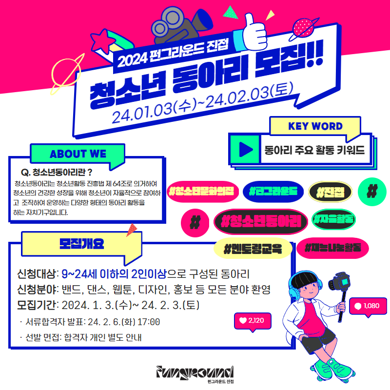 2024년 청소년의 재능과 끼를 펼칠 수 있는 청소년동아리 팀을 모집합니다.