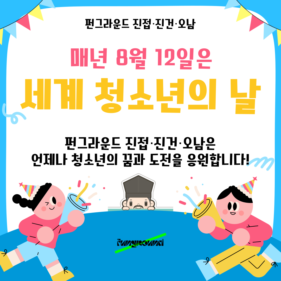 진접 매년 8월 12일은 ★세계 청소년의 날★ 작성자 펀그라운드진접 등록일자 2025년 8월 12일 17시 26분 29초 조회 154 세계 청소년의 날.png [ Size : 195.18KB, Down : 74 ] 미리보기 다운로드 목록보기