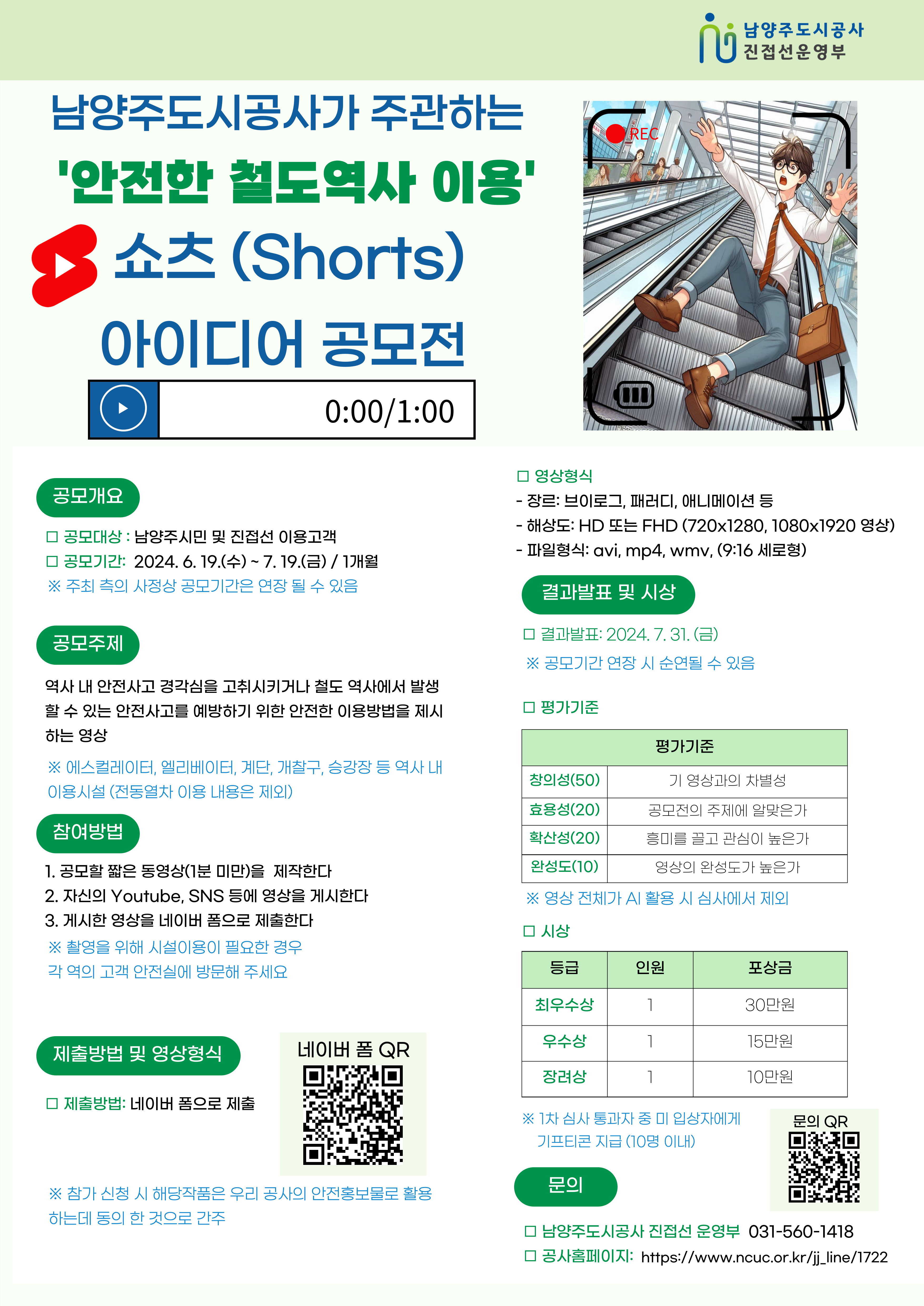 진접 [진접선] 안전한 철도역사 이용 쇼츠(Shorts) 공모전 (~7/19(금)까지)