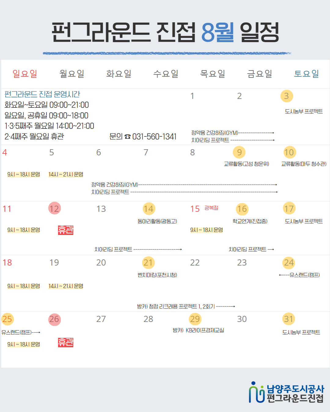 진접 [공지] 펀그라운드 진접 8월 일정 작성자 펀그라운드진접 등록일자 2024년 8월 1일 11시 34분 35초 조회 214 제목을 입력하세요 (11).jpg [ Size : 550.55KB, Down : 111 ] 미리보기 다운로드 목록보기