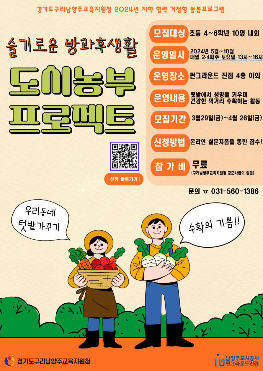 펀그라운드 진접에서 초등 4~6학년 대상으로 도시농부 프로젝트가 시작됩니다. *2024 지역 협력 거점형 돌봄프로그램