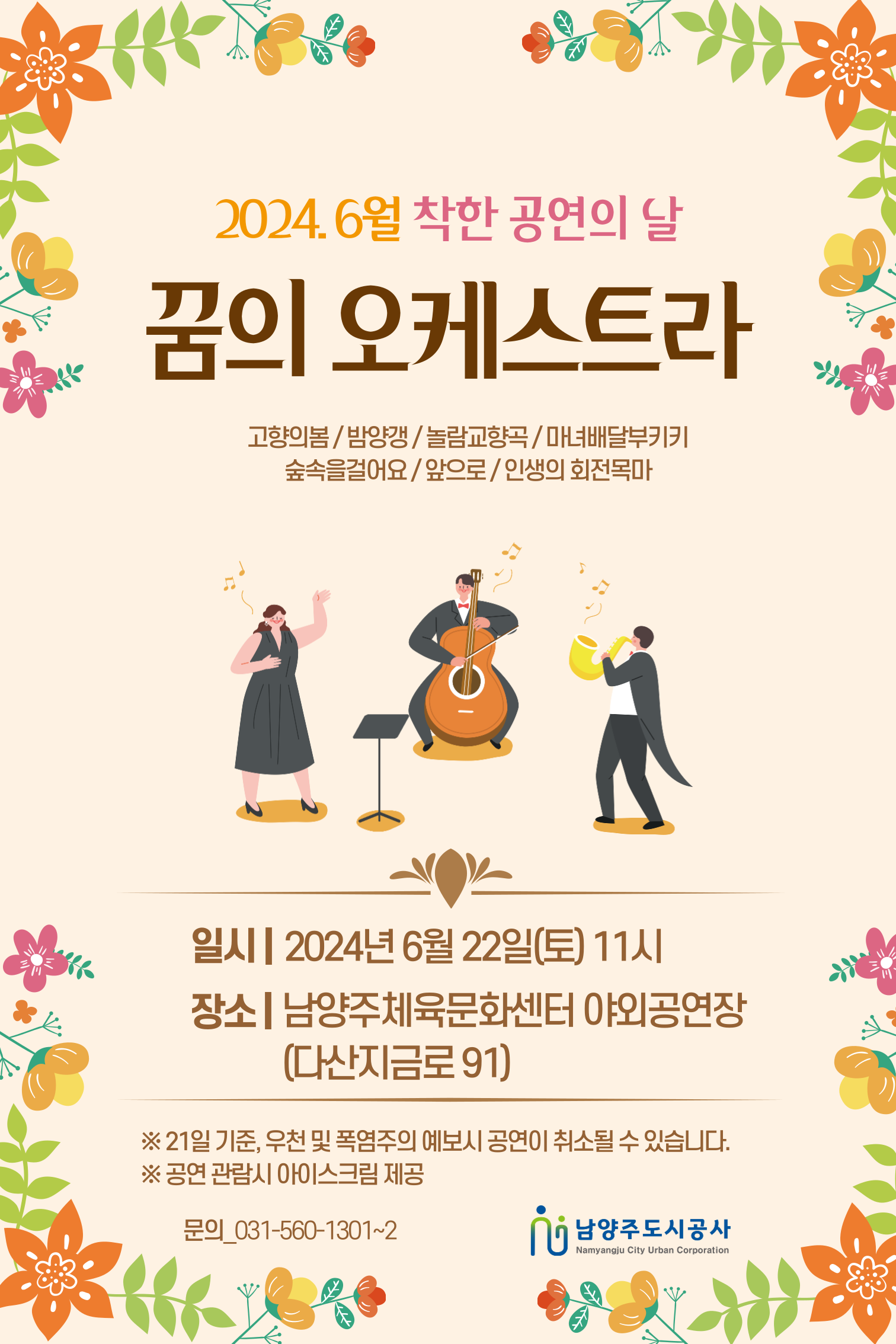 6월 22일 토요일 오전 11시, 남양주체육문화센터에서 <6월 착한공연의 날>을 개최합니다.