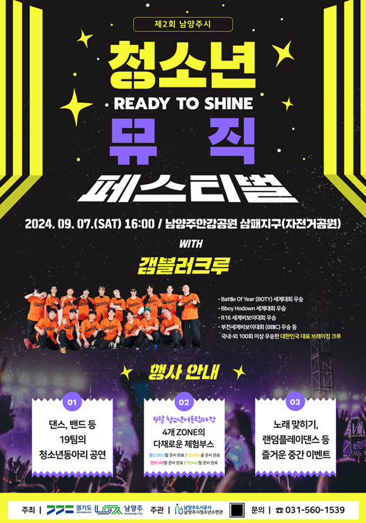 진접 [홍보-남양주시청소년수련관] 9월 7일(토) 16:00, 청소년 뮤직 페스티벌 작성자 펀그라운드진접 등록일자 2024년 8월 22일 16시 27분 5초 조회 245 뮤직페스티벌(청수관).png [ Size : 385.26KB, Down : 127 ] 미리보기 다운로드 목록보기