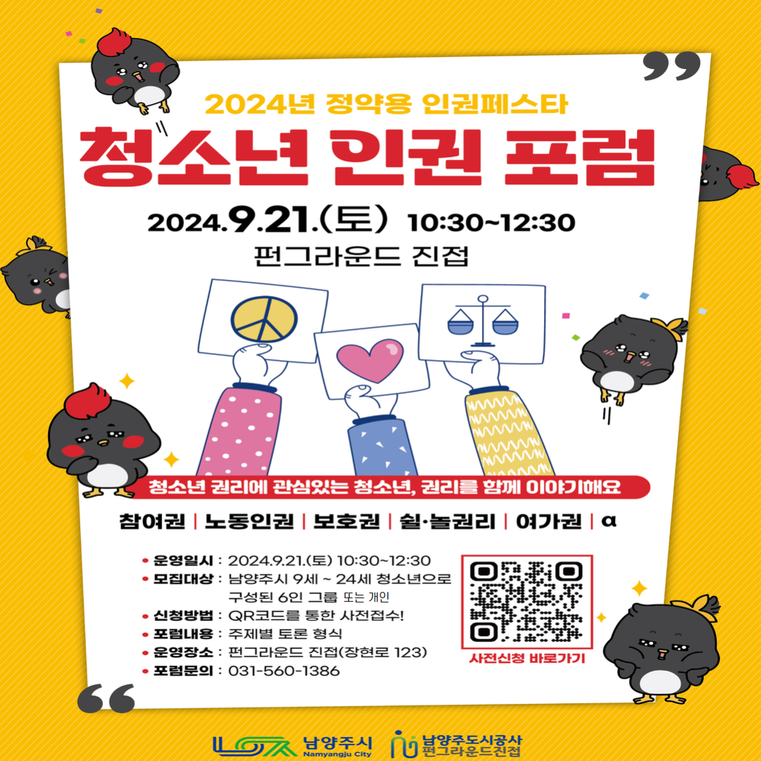 진접 9월 21일(토) 10:30~12:30, "청소년 인권포럼" 참가자 모집!!