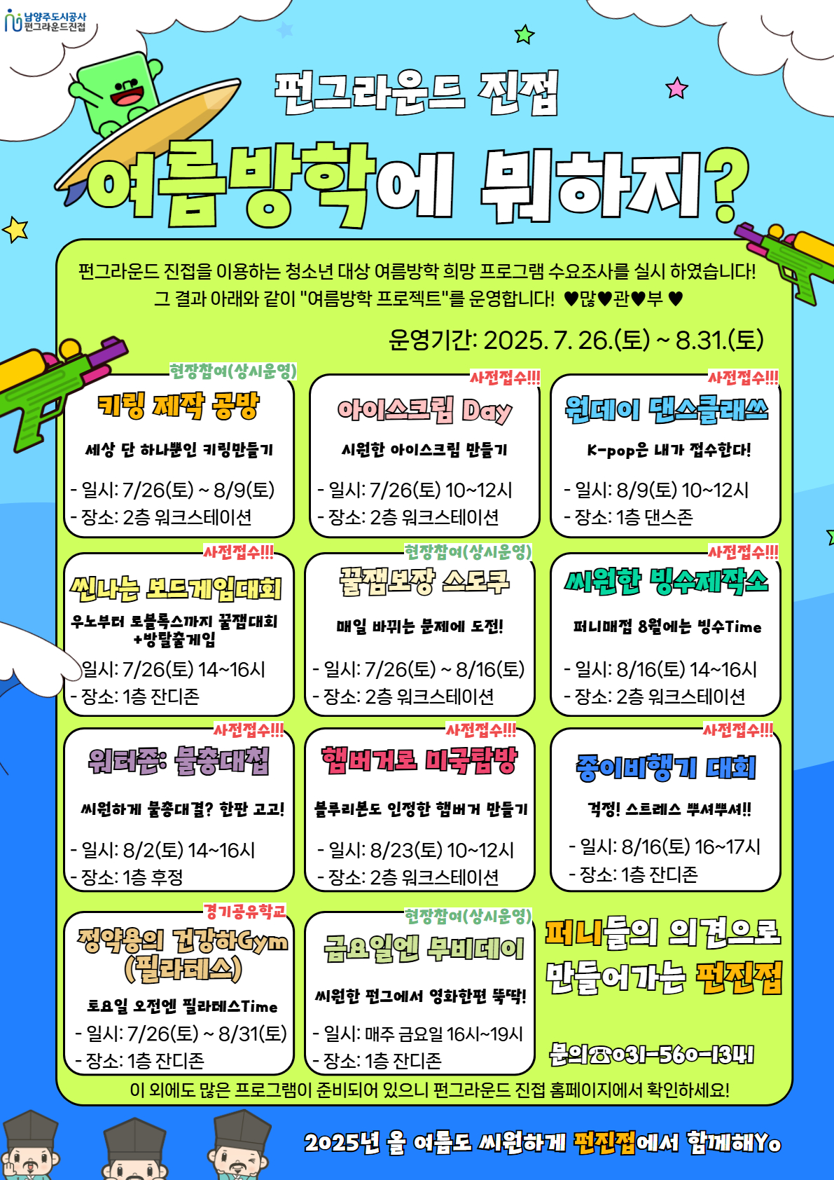 1. [펀그라운드 진접] 2025 여름방학 프로젝트 홍보지.jpg   [ Size : 1.24MB, Down : 57 ] 미리보기 다운로드