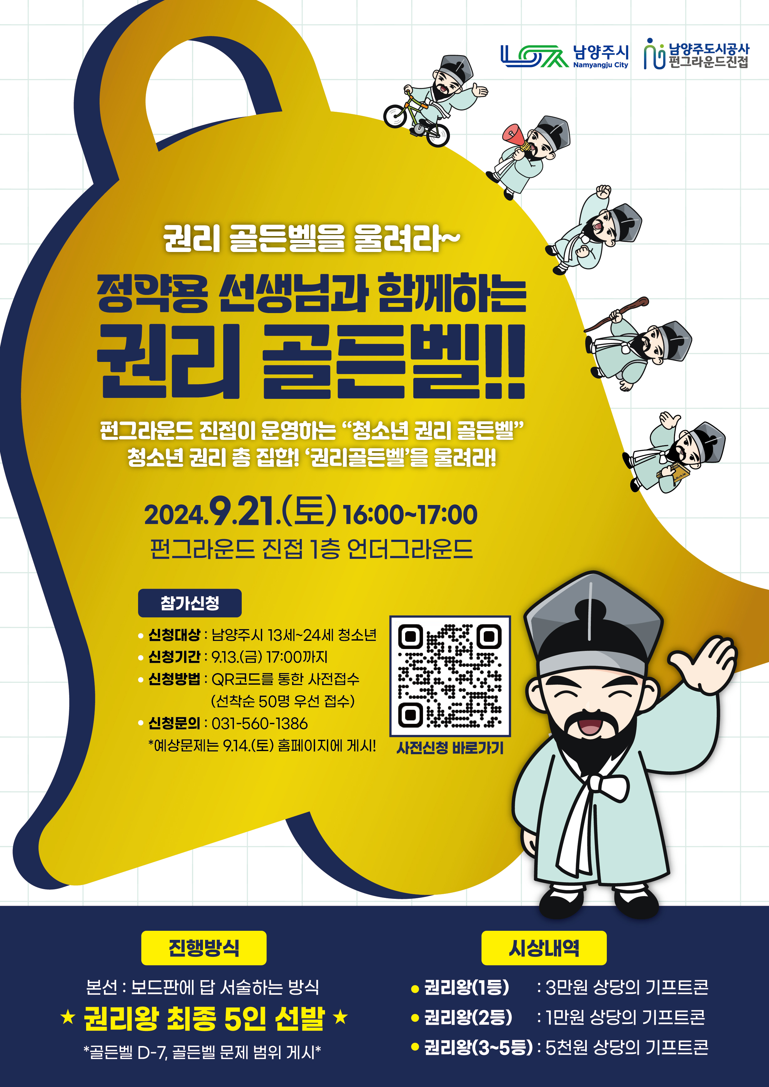 진접 9월 21일(토) 16:00~17:00, "청소년 권리골든벨" 참가자 모집!!
